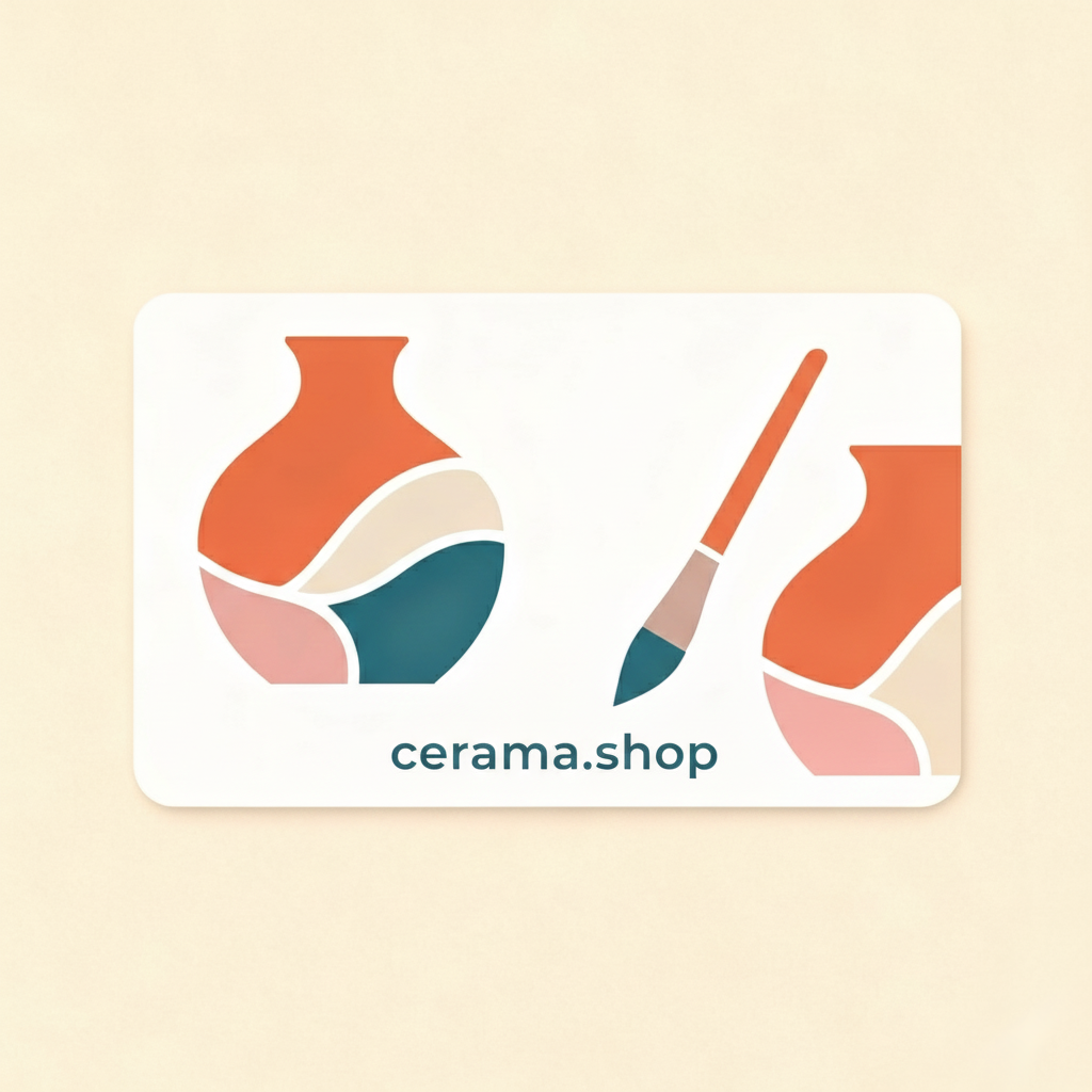 Questo buono regalo è valido per l’acquisto di prodotti Cerama. Utilizzandolo è possibile scegliere tra una vasta gamma di argille, colori, smalti e strumenti!