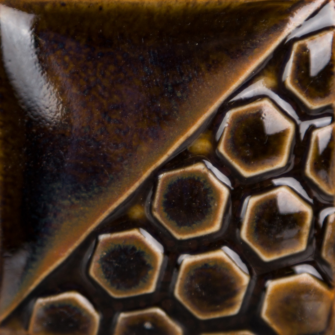 Sebbene ideati per la bassa temperatura, molti colori Elements™ offrono interessanti performance anche a temperature superiori (cono 6–10). In queste condizioni il colore evolve verso toni più intensi di marrone scuro, rosso e oro, con una maggiore mobilità dello smalto che può creare dettagli più marcati e “rotture” cromatiche sulle texture del pezzo (foto 2, 3 e 4).