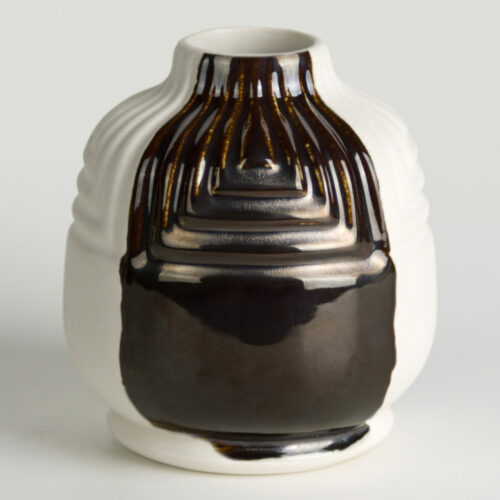 A bassa temperatura (cono 06), Black Adventurine si caratterizza per un nero opaco e marezzato con riflessi scuri e metallici rame-bronzo, che conferiscono alla superficie un aspetto profondo e materico con variazioni sottili (foto 1).