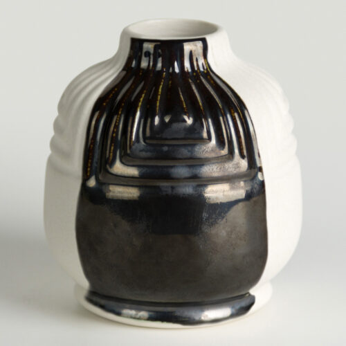 A bassa temperatura (cono 06), questo smalto si presenta come un nero lucido e metallico (foto 1).