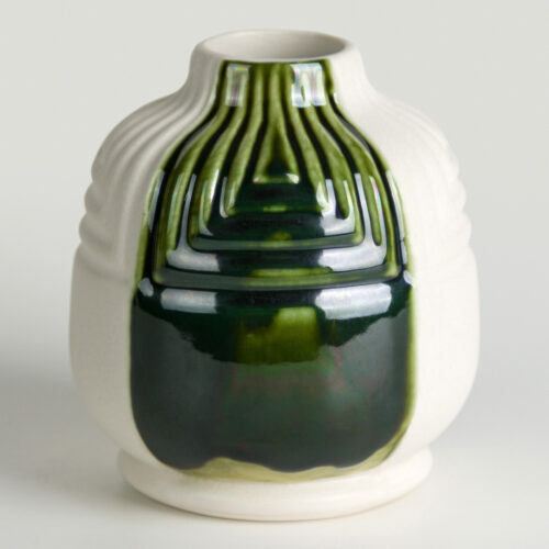 A bassa temperatura (cono 06), Bottle Green si presenta come un verde bottiglia lucido e iridescente, con rotture verso un verde più scuro nelle aree più spesse. Quando applicato in tre mani lo smalto assume una semi-trasparenza che enfatizza le sfumature scure e la profondità del colore, conferendo alla superficie un effetto naturale e stratificato (foto 1).
