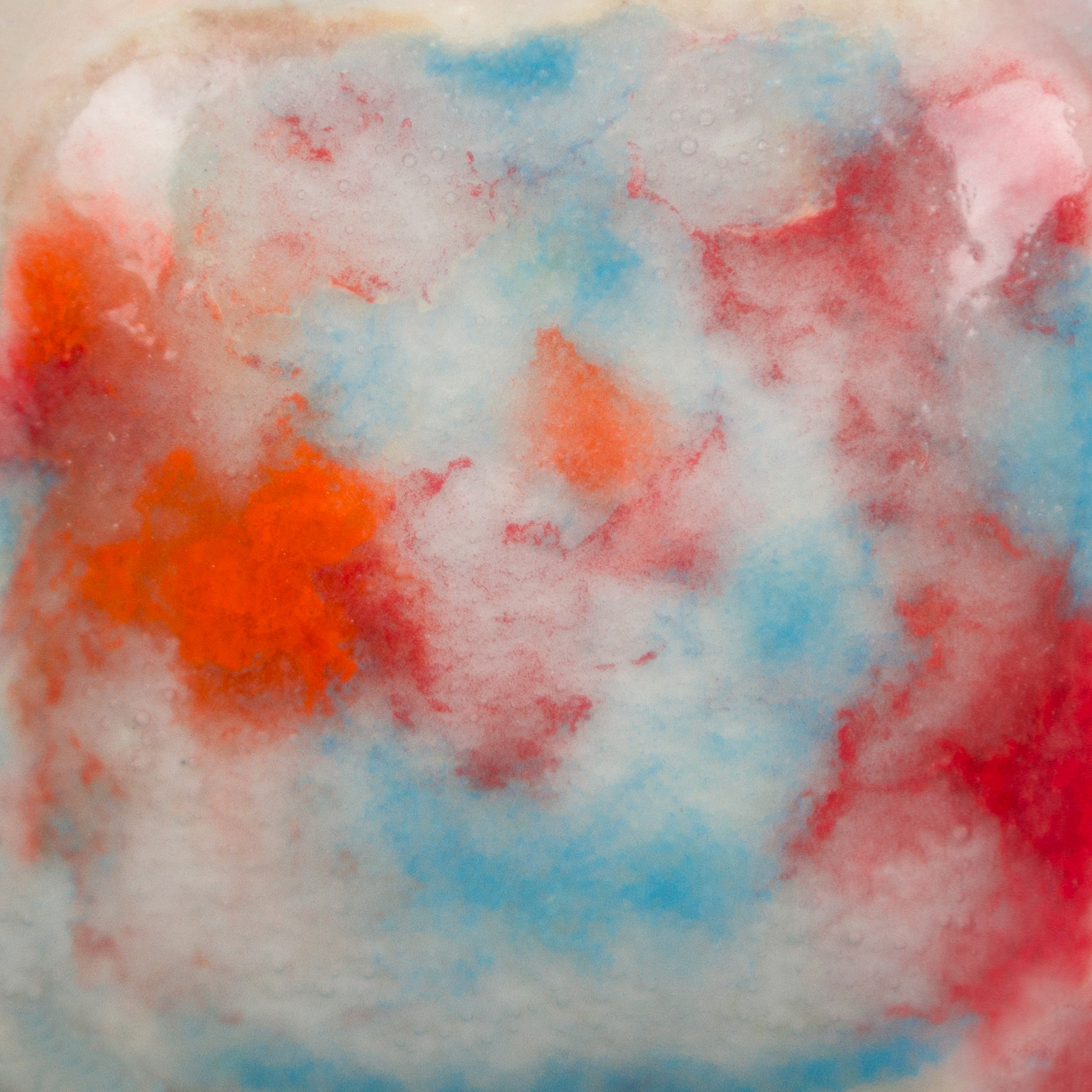 Colore finale: base trasparente con cristalli che fondono e si espandono in rosse, arancioni, gialle, verdi e blu, creando un gioco cromatico brillante e complesso;