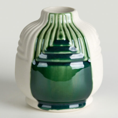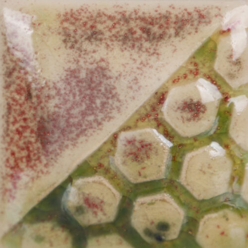 Sebbene concepita per la bassa temperatura, molti colori della serie Elements™ mantengono performance interessanti anche a temperature maggiori (cono 6‑10): in queste condizioni l’aspetto tende a mutare verso un verde più accentuato con maggiore mobilità sulla superficie, arrivando talvolta a sviluppare delicate sfumature calde simili al rosato, creando un movimento più evidente e variazioni tonali intense (foto 2, 3 e 4).