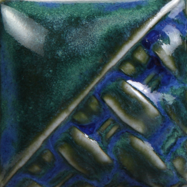 Al cono 6 questo smalto risulterà un blu cobalto variegato con sfumature verdi mentre salendo di temperatura il colore si scurisce. Più sottile è l’applicazione, più verde apparirà la glassa. Più spessa è l’applicazione, più blu apparirà. Nei punti in cui la glassa si rompe, sarà verde.