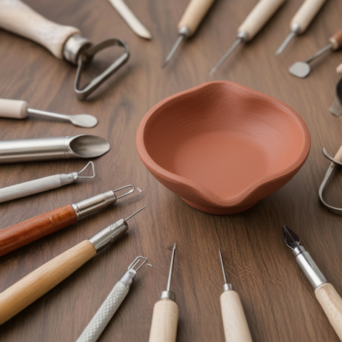 Strumenti e utensili per ceramica: mirette, spatole, pennelli, spugne e accessori indispensabili per modellare e decorare l’argilla.